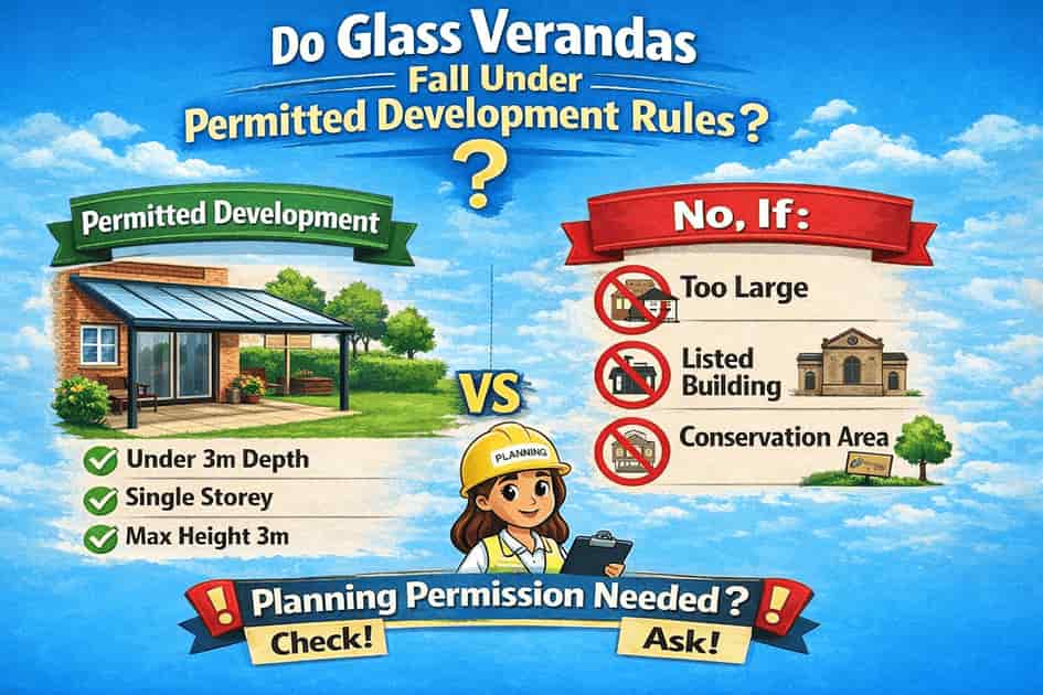 In many cases, yes — glass verandas can fall under permitted development rules, but only if they meet specific criteria.